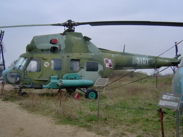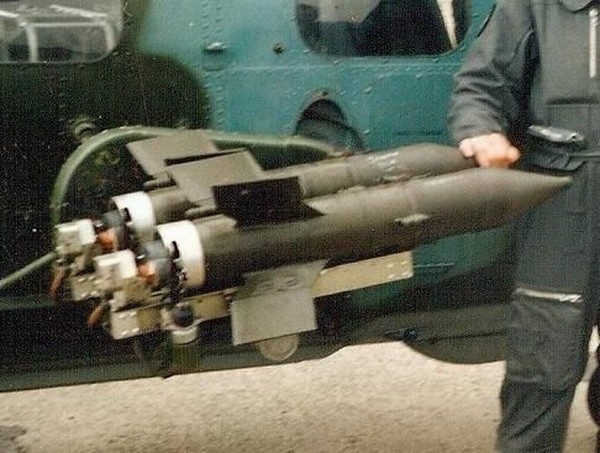 Wyrzutnia PPK Malutka na śmigłowcu Mi-2.