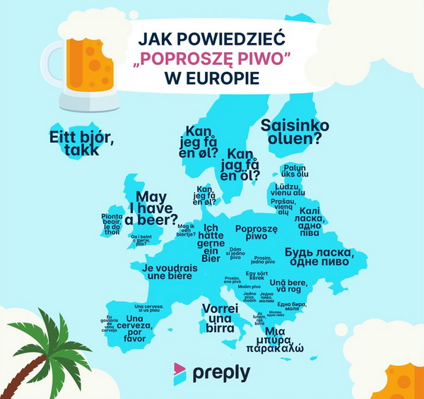 Znajomość podstawowych zwrotów za granicą potrafi uratować życie. Przyda się na przykład, gdy zgubimy drogę lub… dopadnie nas pragnienie. Na całym świecie nie brakuje miłośników zimnego piwa, zwłaszcza w sezonie wakacyjnym. Z myślą o nich platforma do nauki języków obcych Preply.com przygotowała krótki przewodnik, który pozwoli porozumieć się z miejscowym barmanem i zamówić ten bursztynowy trunek w różnych częściach świata.