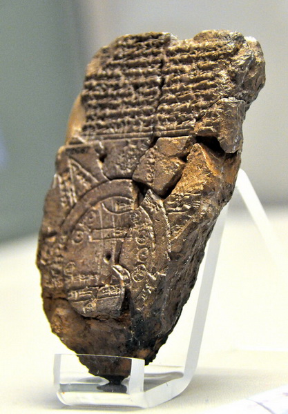 Ten słynny starożytny artefakt jest wczesnym przedstawieniem świata znanego Babilończykom około 900 roku p.n.e. Jest to typowe dla map starego świata, ponieważ koncentruje się na lokalnych elementach, takich jak Eufrat, a następnie rozszerza się na zewnątrz. Mapa babilońska obejmuje sąsiednie miasta z towarzyszącymi im etykietami, a następnie ocean i kilka lądów poza nim.
