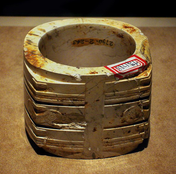 Neolityczna kultura Liangzhu, pochodząca z chińskiej prowincji Jiangsu z trzeciego tysiąclecia p.n.e., stworzyła przedmioty z jadeitu, ceramiki i kamienia, które są nadal w użyciu. Khan Academy opisuje te obiekty jako „jedne z najbardziej imponujących, ale enigmatycznych ze wszystkich starożytnych chińskich artefaktów z jadeitu”. Ponadto „były trudne i czasochłonne w produkcji. Ponieważ jadeitu nie można rozłupać, należy go obrabiać twardym piaskiem ściernym”.
