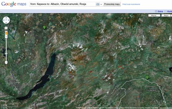 Mapa Google z zaznaczonym punktem początkowym i końcowym wyprawy Czernichowskiego