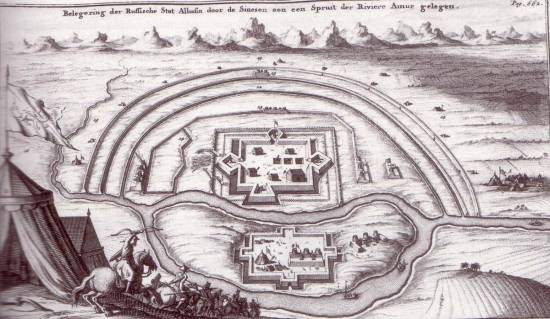 Oblężenie Ałbazina (holenderska grafika z XVII wieku)