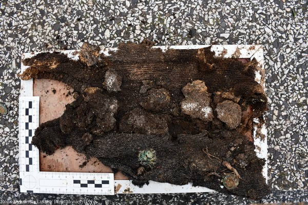 Przy szczątkach ujawniono artefakty: plastikowe i metalowe guziki, fragmenty odzieży i obuwia. Szczególnie cennym znaleziskiem okazał się notes odnaleziony przy jednej z ofiar.