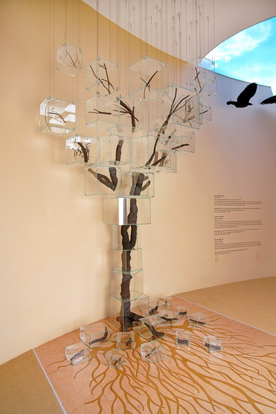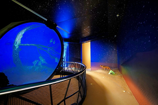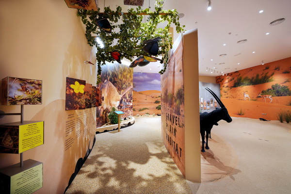- Natomiast sala siedliskowa rozprawia się z mitem „jałowych pustyni”, pokazując różnorodną faunę i florę rezerwatu poprzez realistyczne modele wyprodukowane techniką druku 3D, wyświetlacze holograficzne, budki interaktywne i urządzenia odtwarzające śpiew rozmaitych gatunków ptaków zamieszkujących DDCR. Zapaleni miłośnicy przyrody znajdą tu także prawdziwe okazy.