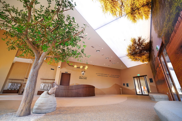- Recepcja stanowi otwartą przestrzeń zachęcającą gości do zwiedzania. Na ogromnej ścianie i suficie napinanym znajduje się tu ogromna fotografia przedstawiająca oryksa arabskiego w naturalnym środowisku. Z kolei w interaktywnej budce goście mogą zapoznać się z mapą rezerwatu i dowiedzieć się, gdzie zaobserwowano rzadko widywane gatunki, np. lisa arabskiego.