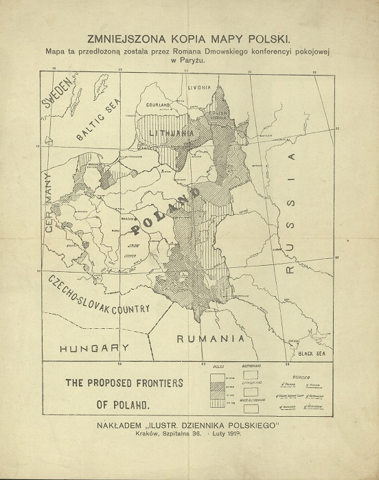O ile w wypadku granicy wschodniej polskie aspiracje zależały w dużej mierze od własnych poczynań militarnych i politycznych, to określenie granicy zachodniej było w decydującym stopniu uzależnione od decyzji, które zapadły na rozpoczętej w styczniu 1919 roku konferencji pokojowej w Paryżu. Wyjątkiem w tym względzie okazały się losy Wielkopolski, której mieszkańcy dzięki zwycięskiemu powstaniu zapewnili sobie faktyczne przyłączenie do odrodzonej ojczyzny. Zanim jednak zwycięska koalicja podjęła ostateczne decyzje dotyczące granic, 29 stycznia 1919 roku Roman Dmowski na posiedzeniu Rady Dziesięciu (składającej się z przedstawicieli najważniejszych koalicjantów Ententy) przedstawił polskie stanowisko w sprawie kształtu terytorialnego niepodległej Polski. W trakcie swego wystąpienia reprezentant rządu Rzeczypospolitej postulował wcielenie do niej całego zaboru pruskiego oraz tych obszarów Niemiec, które zamieszkiwane były w większości przez ludność etnicznie polską.
