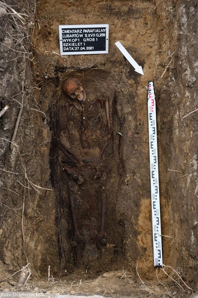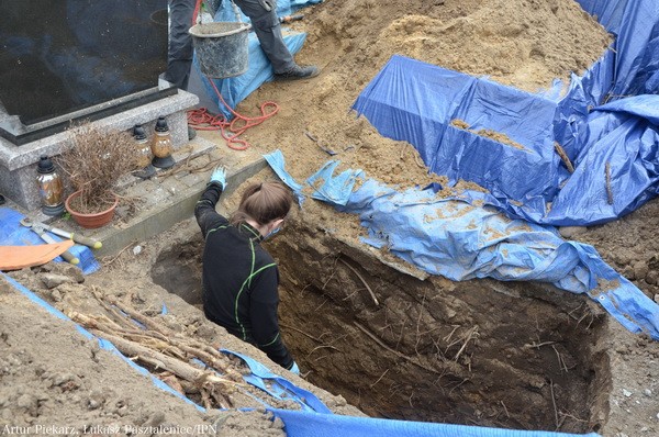 W wyniki przeprowadzonych działań odnaleziono i podjęto szczątki należące do mężczyzny w wieku ok. 20-25 lat. Spoczywały one w pozostałościach trumny, co koresponduje z raportami PUBP w Lubartowie dotyczącymi odnalezienia zwłok partyzanta. W jamie grobowej ujawniono guziki, skórzany pasek oraz książeczkę (prawdopodobnie do nabożeństwa). Szczątki zostały przewiezione do Katedry i Zakładu Medycyny Sądowej UM w Lublinie, gdzie zostaną poddane badaniom medycznym oraz identyfikacji genetycznej.