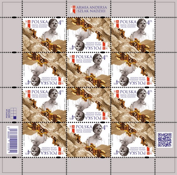 W środę, 17 listopada br., Poczta Polska wprowadziła do obiegu znaczek pocztowy emisji pn.: „Armia Andersa – Szlak Nadziei”. To czwarte wydawnictwo z serii przypominającej o tragicznej historii Polaków, którzy maszerowali przez trzy kontynenty, przekraczali granice Związku Sowieckiego z towarzyszącą im nadzieją na powrót do domów.