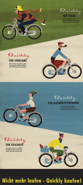 Na przykład specjalna reklama NSU Quickly w każdy poniedziałek pojawiała się na ostatniej stronie poczytnej gazety BILD, czasami poruszając aktualne tematy. W jednym z ogłoszeń po międzynarodowym meczu Niemcy - Anglia czytamy: "Widzisz poobijanych graczy zmierzających do domu z Berlina, a wszyscy napastnicy jęczą: 'Błogosławiony ten, kto ma Quickly!'". Kolejny wielki hit reklamowy pojawił się w roku 1971. "Ro 80. Vorsprung durch Technik." napisano wielkimi literami na plakacie reklamowym NSU Ro 80. W ten sposób w dziale reklamy NSU powstał słynny slogan Audi, który utkwił w umysłach ludzi na całym świecie: "Vorsprung durch Technik – Przewaga Dzięki Technice".