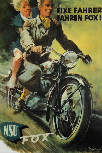 W ramach odbudowy marki po II wojnie światowej, pojawiły się popularne rowery NSU oraz motorower NSU Quick o pojemności 98 cm3. Wkrótce potem zaprezentowano modele o pojemności 125 i 250 cm3, a później jeszcze NSU Fox, NSU Lux, NSU Max i NSU Konsul z silnikiem o pojemności 500 cm3. Z roczną produkcją prawie 300 000 jednośladów (motorowerów, motocykli i skuterów), firma z Neckarsulm w 1955 r. weszła na szczyt międzynarodowego przemysłu motocyklowego. W tym czasie była to największa fabryka jednośladów na świecie. Pomimo wszystkich sukcesów motocykli NSU, które przyniosły firmie światową sławę, zwycięstw w pięciu motocyklowych mistrzostwach świata w latach 1953-1955 i wielu światowych rekordów prędkości, kierownictwo firmy musiało zareagować na malejący popyt na motocykle, który rozpoczął się w połowie lat 50. Wraz z rosnącym dobrobytem w Niemczech, klienci zapragnęli jeździć samochodami. Nadszedł więc czas, by NSU ponownie zaczęło produkować auta.