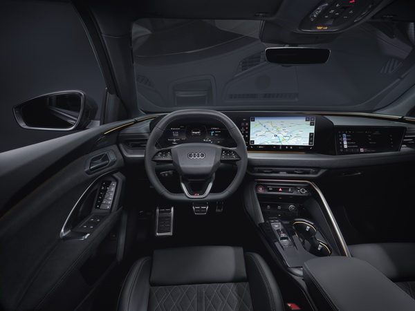 Centralnym elementem wnętrza jest „cyfrowa scena” w formie wyświetlaczy Audi MMI, zlokalizowana przed kierowcą i pasażerem z przodu. Odpowiednio ustawione ekrany są zintegrowane z wnętrzem i idealnie do siebie dopasowane. Smukły, wolnostojący panoramiczny wyświetlacz Audi MMI ma zakrzywiony design i wykorzystuje technikę OLED; łączy 11,9-calowy zestaw wskaźników Audi virtual cockpit oraz 14,5-calowy ekran dotykowy MMI.