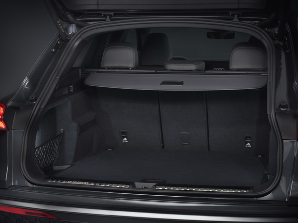 Szczególnie praktyczną cechą Audi Q5 SUV* jest w pełni regulowana tylna kanapa. Można ją przesuwać wzdłuż i pochylać jej oparcie, zwiększając w ten sposób pojemność bagażnika lub komfort dla pasażerów z tyłu – w zależności od potrzeb. Jednocześnie na kanapie mogą wygodnie usiąść trzy osoby. Po złożeniu tylnych siedzeń pojemność bagażnika wzrasta nawet do 1473 litrów (w zależności od wariantu). Roletę przestrzeni bagażowej można schować w specjalnie zaprojektowanym schowku pod podłogą bagażnika, który oferuje jeszcze więcej miejsca na bagaż i bezpieczne miejsce na osłonę.