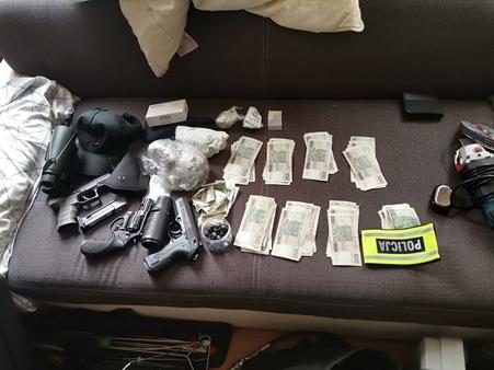 Łódzcy policjanci otrzymali informację, że ktoś włamał się do jednego z mieszkań na terenie dzielnicy Górna. Sprawcy ukradli z niego m. in. obrazy znanych polskich i zagranicznych malarzy, zabytkowe monety różnych nominałów, a także inne wartościowe przedmioty. Właściciel oszacował straty na około 8 milionów złotych. Policjanci natychmiast zajęli się tą sprawą. Na miejscu zdarzenia zabezpieczyli ślady, skrupulatnie przesłuchali świadków, zabezpieczyli okoliczne monitoringi. Dokładna analiza zgromadzonego materiału pozwoliła im na wytypowanie, kto może być odpowiedzialny za to włamanie. 31 lipca 2023 roku zapukali do drzwi jednego z mieszkań na terenie dzielnicy Górna w Łodzi, gdzie według ich ustaleń mógł znajdować się sprawca. Nikt w mieszkaniu nie odpowiadał na ich wołania. Intuicja podpowiadała im jednak, że szukany przez nich mężczyzna jest w środku. W pewnym momencie funkcjonariusze zabezpieczający teren w pobliżu miejsca zamieszkania prawdopodobnego sprawcy zauważyli mężczyznę wyskakującego przez okno mieszkania na 1 piętrze. Policjanci natychmiast ruszyli za nim w pościg. Zatrzymali go po około 200 metrach. Jak się okazało był to 31-letni mężczyzna poszukiwany do odbycia kary ponad roku pozbawienia wolności. Policjanci przeszukali jego miejsce zamieszkania. Odnaleźli tam przedmioty pochodzące z włamania m.in. biżuterię, dokumenty, zabytkowe monety oraz fragmenty ram obrazów. W mieszkaniu zabezpieczyli ponadto 4 sztuki broni w tym jedną pneumatyczną. Zostaną one poddane badaniu przez biegłego, by określić, czy na ich posiadanie potrzebne jest zezwolenie. Funkcjonariusze odnaleźli również blisko 730 gramów substancji odurzających, które po wstępnym badaniu okazały się m.in. marihuaną i amfetaminą. Mężczyzna w rozmowie z policjantami twierdził, że nie wie co to są za przedmioty i skąd się wzięły w jego mieszkaniu. Został jednak zatrzymany i usłyszał zarzut kradzieży z włamaniem w tzw. recydywie. Sąd na wniosek Prokuratury Rejonowej Łódź-Górna zastosował wobec mężczyzny 3-miesieczny areszt. Jego los podzieliło jego dwóch wspólników, którzy w ręce policjantów wpadli tego samego dnia. Jak się okazało byli to mieszkańcy Łodzi: 33 i 42-latek. Policjanci zapukali do ich drzwi wczesnym rankiem 31 lipca 2023 roku. 33-latek nie miał wcześniej zatargów z prawem. Pozostała dwójka była znana policjantom ze swojej wcześniejszej działalności przestępczej. Usłyszeli oni zarzuty kradzieży z włamaniem, a ponieważ 31-latek działał w warunkach powrotu do przestępstwa grozi mu zwiększony wymiar kary nawet do 15 lat pozbawienia wolności. Pozostała dwójka może spędzić za kratami 10 lat.