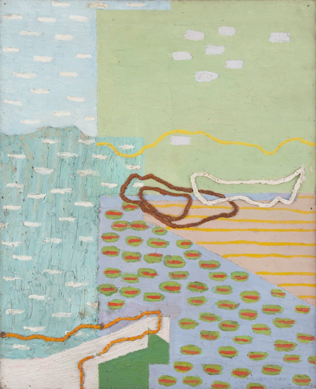 „Przystań w Olsztynie” to wybitny, do tej pory niedostępny na rynku, przykład wczesnej twórczości Stanisława Fijałkowskiego, ikony awangardy polskiej, artysty należącego do tzw. „kręgu Strzemińskiego”. Kompozycja, którą Fijałkowski stworzył na przełomie 1948 i 1949 roku już jako student Władysława Strzemińskiego na Państwowej Wyższej Szkoły Sztuk Plastycznych w Łodzi, jak w soczewce skupia jego pierwsze poszukiwania stylistyczne na pograniczu postimpresjonizmu i kubizmu. Wpływ osobowości Strzemińskiego na Fijałkowskiego był ogromny, co artysta wielokrotnie podkreślał w licznych wypowiedziach i artykułach, nazywając go mistrzem swojej młodości. W łódzkiej PWSSP Stanisław Fijałkowski przeszedł wszystkie stopnie: od studenta poprzez asystenta aż do prorektora. Był świadkiem odsunięcia Strzemińskiego z uczelni, a następnie jego rehabilitacji i nadania szkole imienia mistrza.