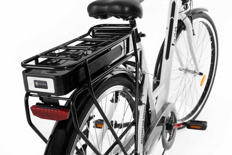 Rower elektryczny Jeep JE-C28L posiada silnik o mocy 250W, który pozwoli na jazdę z prędkością do 25 km/h oraz solidną 44 cm ramę o tradycyjnym, miejsko-turystycznym profilu. Model JE-C28L wyposażony został również w 6-biegowe przerzutki marki Shimano oraz błotniki, dzięki którym jazda będzie nie tylko bardziej efektywna, ale i komfortowa. Umieszczony nad baterią bagażnik umożliwi wygodny transport zakupów lub rzeczy osobistych. Rower Jeep JE-C28L został wyposażony w duże, miękkie a co za tym idzie wygodne siodełko.