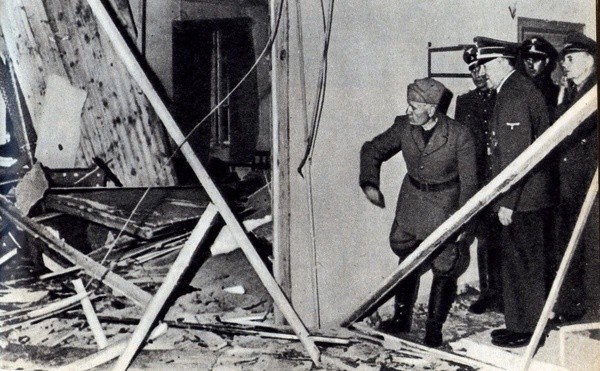 Oględziny sali odpraw w kwaterze Hitlera, tuż po nieudanym zamachu na życie führera (domena publiczna)